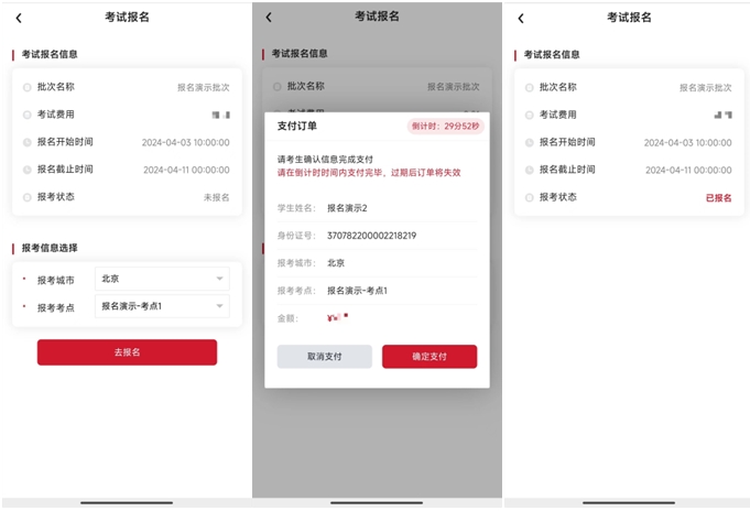 30分鐘內(nèi)訂單有效,超出時(shí)間后訂單將自動(dòng)取消,學(xué)生可重新報(bào)名;